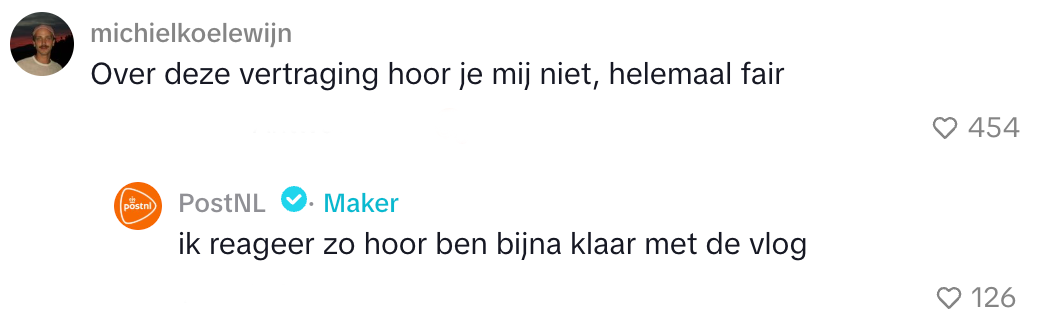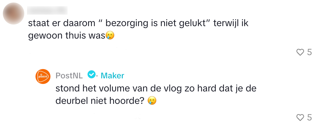 6. Uiteindelijk levert de vertraging bij PostNL wel een reactie van de dader op.