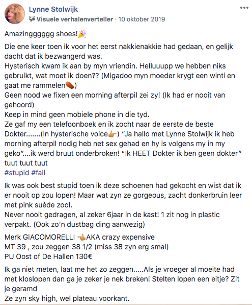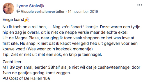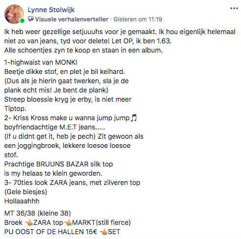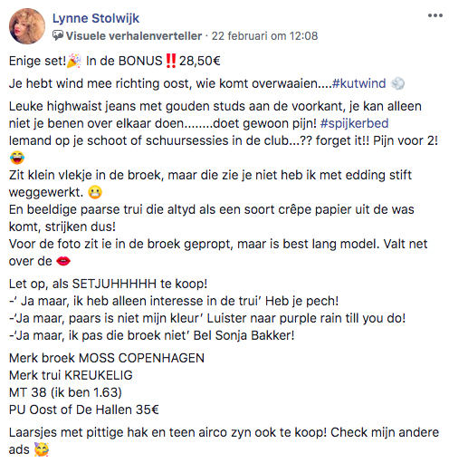 Lynne slijt haar spullen op Facebook met (h)eerlijke productteksten