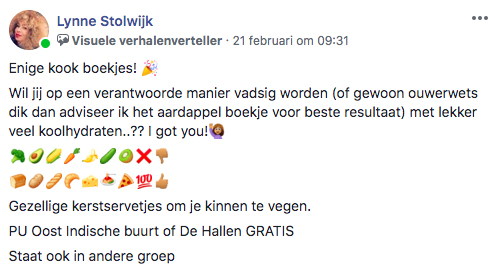 1. Dit is Lynne. Ze post regelmatig wat in de Facebookgroep.