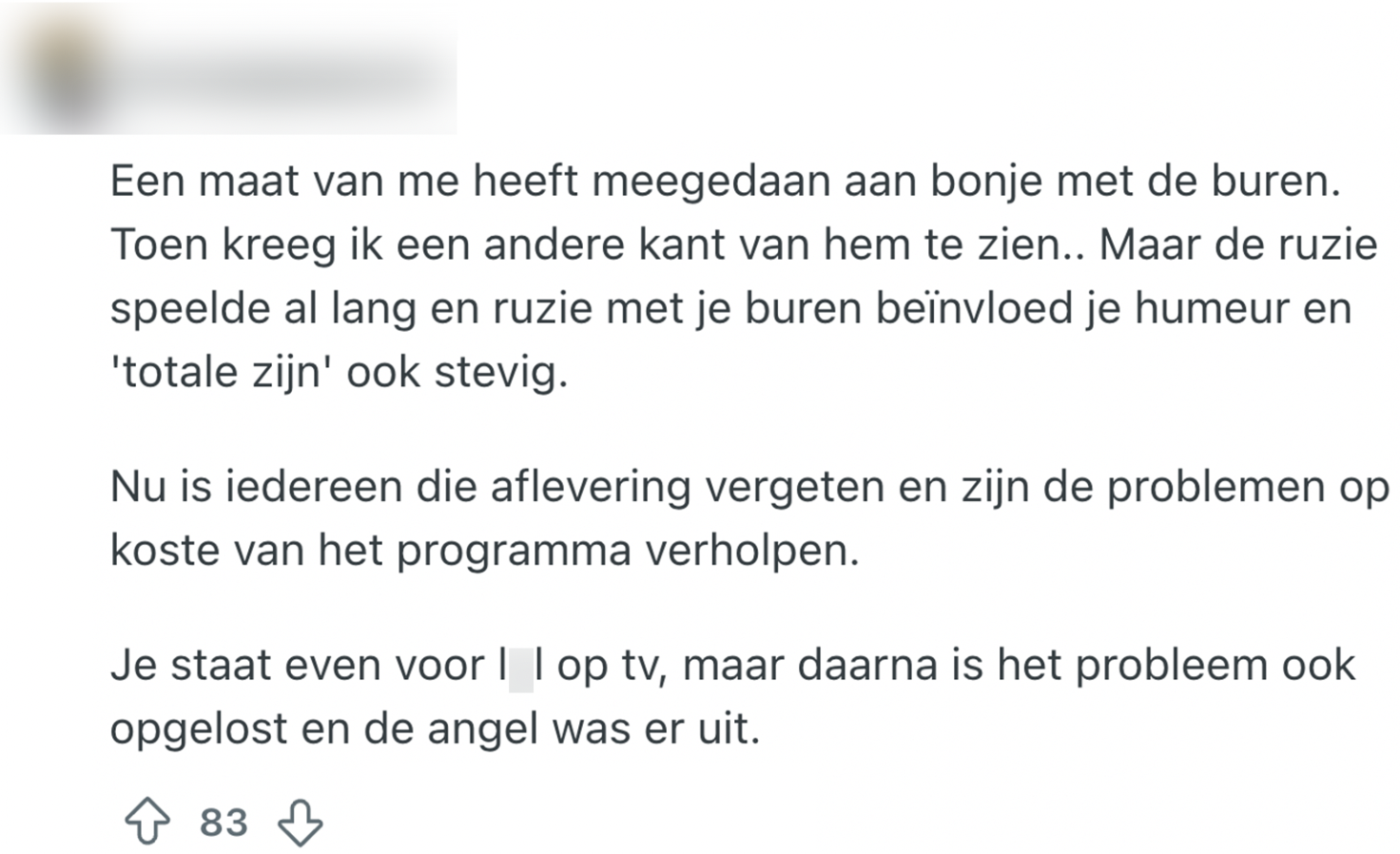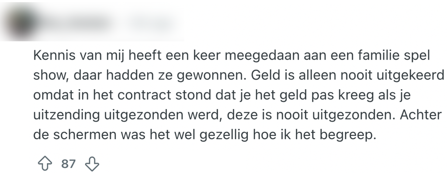 Niet iedereen is in de wieg gelegd voor een carrière als acteur of actrice. Gelukkig bieden sommige tv-programma’s een shortcut naar die felbegeerde ‘moment of fame’. Of je nu je liefdesleven aan het licht brengt op nationale televisie of een burenruzie over een iets te hoge schutting met behulp van Mr. Frank Visser uitvecht: kijkers smullen ervan. Daarom is deze Reddit-gebruiker benieuwd naar de andere kant van het verhaal: hoe Nederlanders hun deelname aan een programma ervaren hebben. De ervaringen stromen al snel binnen.