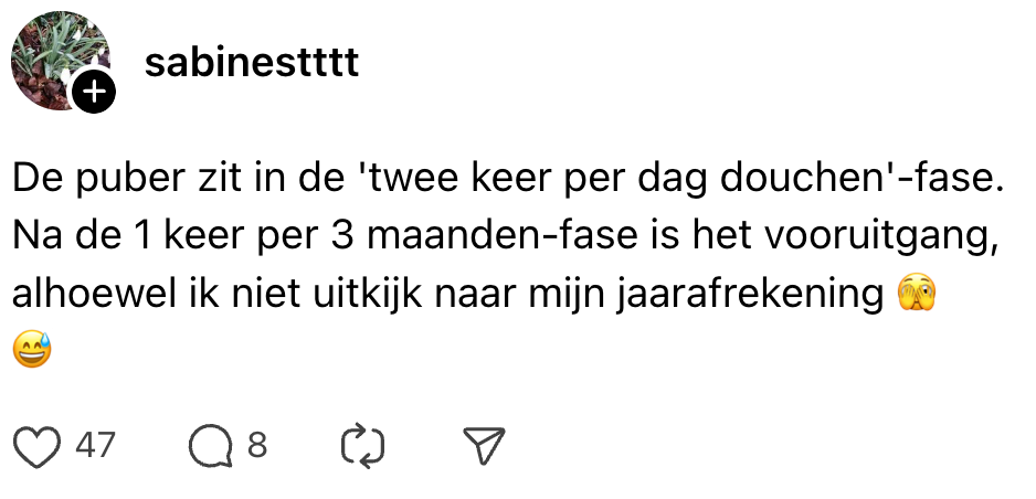 De puberteit betekent gierende hormonen, ochtenden waarop alleen een ‘goedemorgen’ al levensgevaarlijk kan zijn, vreetbuien alsof er een lintworm in de maag zit en motivatie die ergens op de bodem van de oceaan ligt. En dan hebben we het nog niet eens gehad over de constante roasts die gratis en voor niets worden uitgedeeld. Nee, samenleven met pubers gaat niet over rozen. Maar eerlijk is eerlijk: ook dit jaar zorgden ze weer voor een aantal (p)über memorabele momenten. En bij die momenten willen we effe stilstaan.