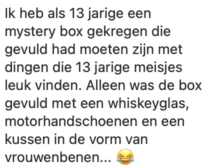 5. Waarom ze dit voor een dertien-jarig meisje in een box doen blijft een mysterie.