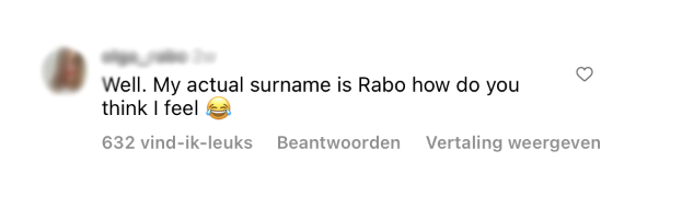 Als je nog niet zo lang in Nederland woont zijn er vast veel dingen waar je aan moet wennen, dingen die je verbazen of dingen die je moet leren. Maar dat de naam van een bank voor zoveel verbazing zorgde, is toch best opmerkelijk. Nadat Somi van een vriend hoorde wat de Portugeese betekenis is van ‘Rabo’ kan ze niet meer zonder te lachen langs een filiaal van de Rabobank lopen. Uit de comments blijkt dat ze niet de enige is die deze bank nu lachwekkend vindt.