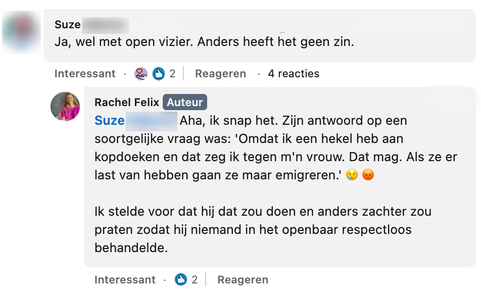 Wanneer Rachel Felix een man in de supermarkt iets racistisch over hoofddoekjes hoort zeggen, knapt er iets. Ze is boos dat racisme nog altijd een ding is en spreekt de man aan. Later deelt ze het verhaal op LinkedIn, want wat zouden anderen mensen in deze situatie hebben gedaan?