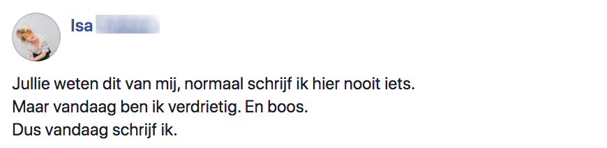 14. Haar bericht is talloze keren gedeeld in Nederland en België. En Isa’s woorden raken vele mensen diep.