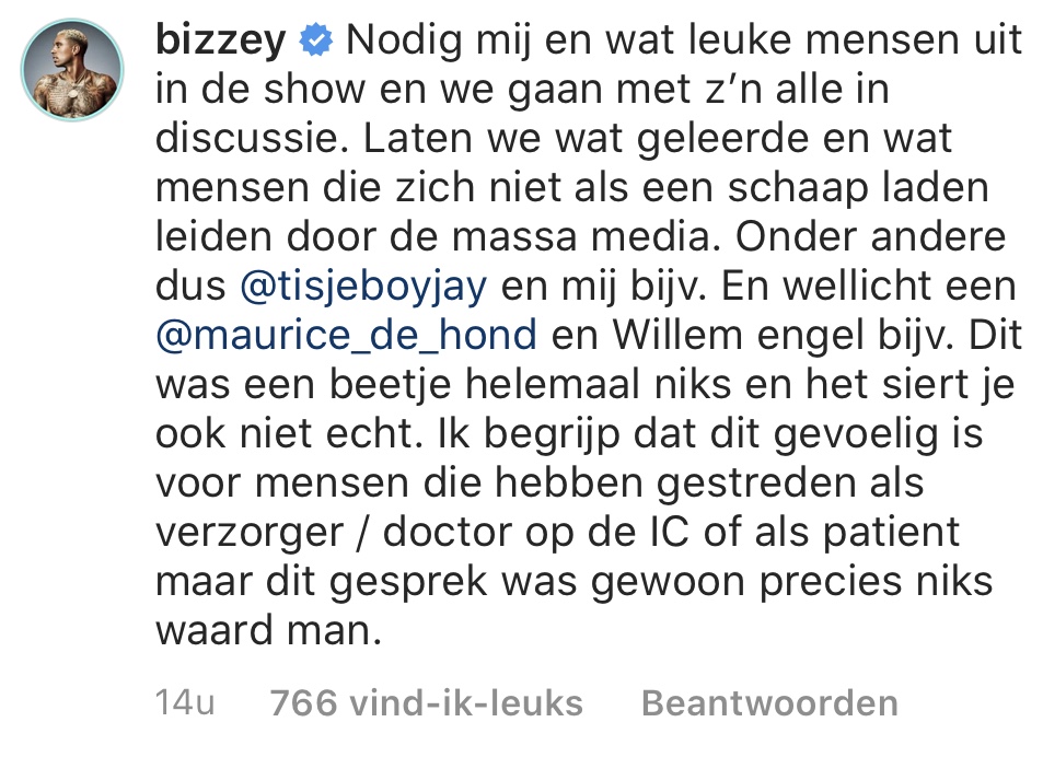 5. En Tim laat in reactie op Bizzey nogmaals weten wat hij nu eigenlijk wilde horen van Jay.