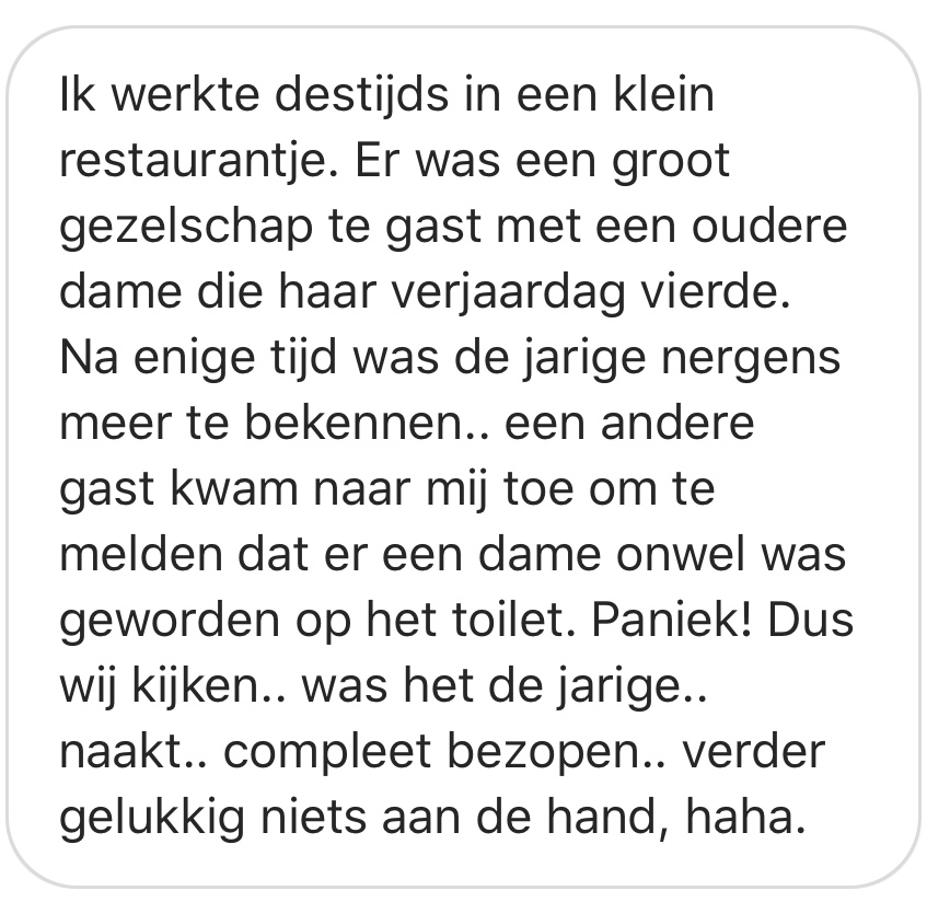 We kunnen er maar geen genoeg van krijgen, de horeca. Zeker in het weekend is het de ideale plek om even uit de dagelijkse sleur te raken. Of het nu gaat om een heerlijk diner in een restaurant of een (vega)bitterbal met een biertje in de kroeg. Toch gebeuren er ook een heleboel maffe dingen in de horeca. We vroegen jullie eerder wat voor rare momenten jullie hier hebben meegemaakt. Ben jij hier zelf vaak ook te vinden? Dan zijn deze ietwat ongemakkelijke situaties sowieso net iets te herkenbaar.