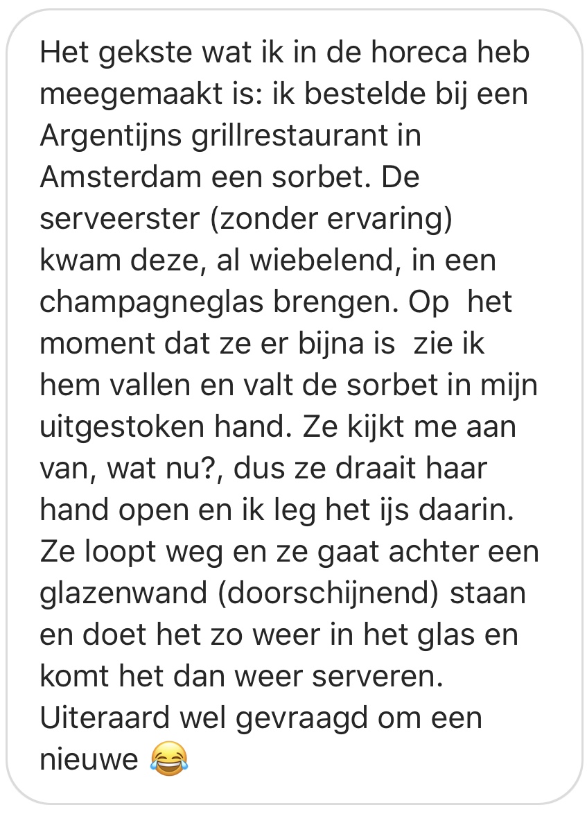 13. Ja oké, maar vroegen om gekke situaties in een restaurant.