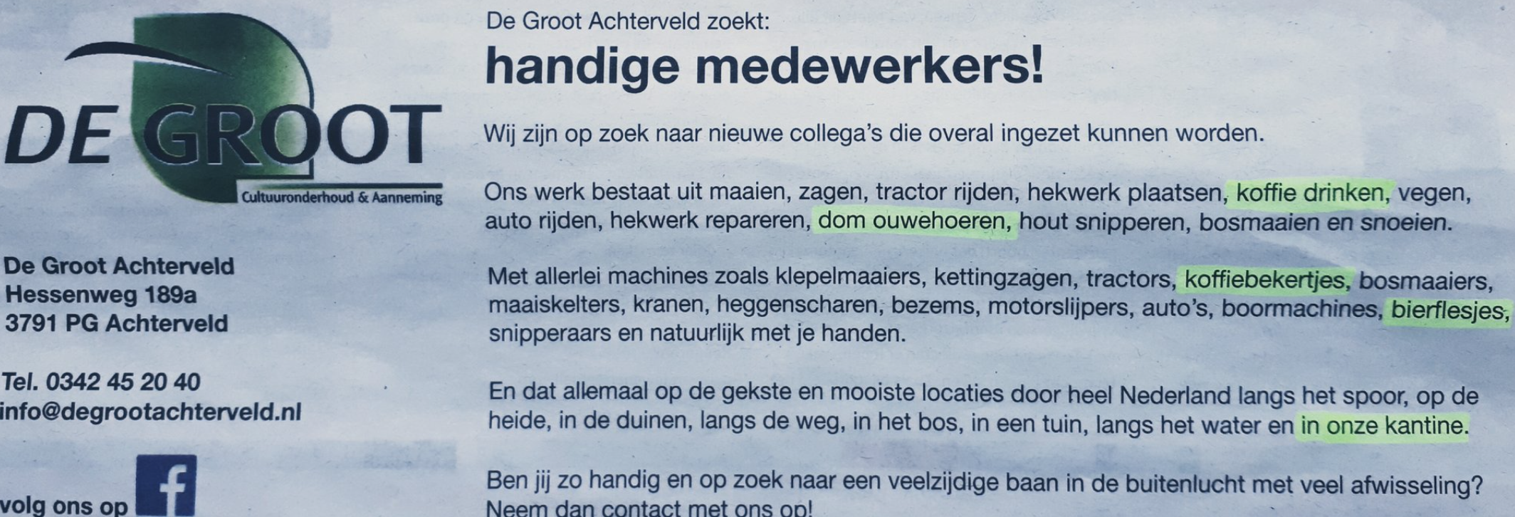 14. Tenslotte is het fijn om te weten dat het niet uitmaakt wat je interesses zijn, een baan hebben ze altijd voor je.