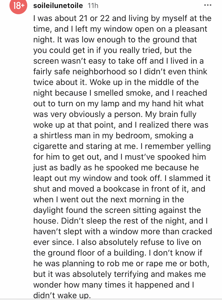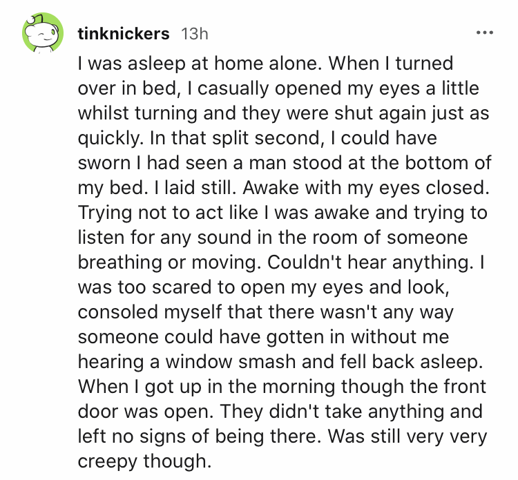 Een horrorfilm op z’n tijd is leuk. Maar het zorgt er ook voor dat we ons de pleuris schrikken als we alleen thuis zijn en de deur waait dicht of als we ineens een vreemd geklop horen. Toch blijken die angsten niet altijd onterecht. Op Reddit was iemand op zoek naar de engste ervaringen van mensen die alleen thuis waren. Dus zoek maar vast een kast uit, want we gaan je erop jagen.
