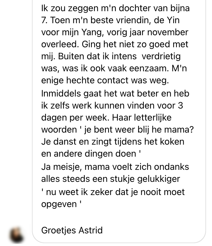 4. Astrid deelt een persoonlijk verhaal, en vindt dat haar jonge dochter een kerstkaart verdient voor al haar steun.