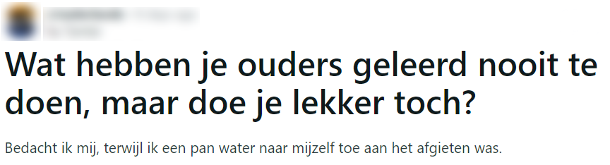 We leren veel van onze ouders en hebben allemaal regels of gewoontes van huis uit meegekregen. Stond je net lekker zonder ovenwanten een maaltijd de oven in te schuiven, werd je (soms) vriendelijk verzocht om uit te kijken dat je je klauwen niet verbrandde. Sommigen hebben echter bepaald dat ze deze aangeleerde dingen liever in het verleden laten. Een redditor vraagt zich af welke wijze lessen van hun ouders tegenwoordig worden genegeerd, en wat blijkt: er zijn best wel wat mensen die zich misdragen.