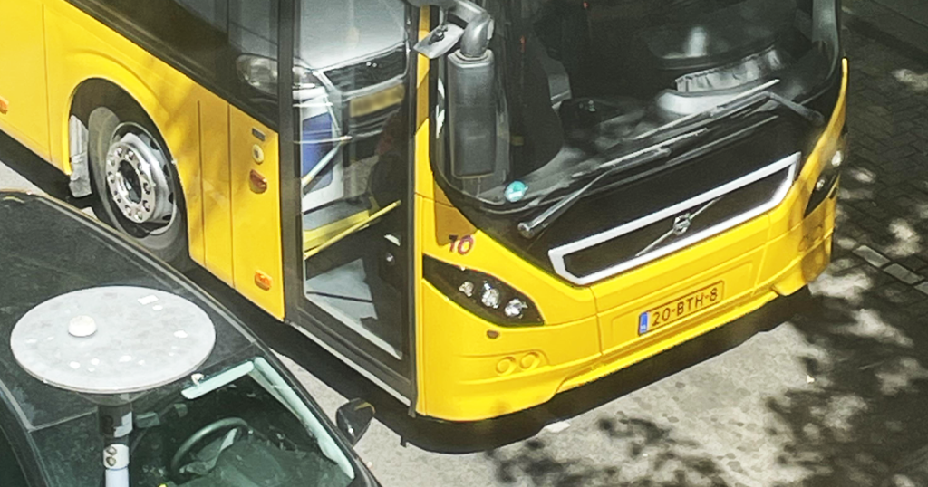 1. Is het een vliegtuig? Is het een vogel? Nee, dat is het niet. Het is een bus met nogal opvallende ‘reisinformatie’, die je op de busbaan ziet.