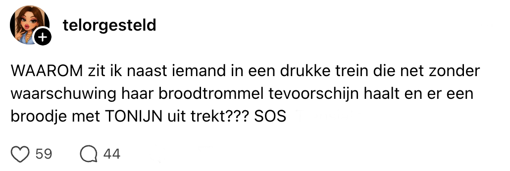 Nog niet uitgelezen? Klik dan hier voor een artikel over reizigers die getikt worden van asociaal gedrag van telefoongebruikers in het openbaar vervoer.
