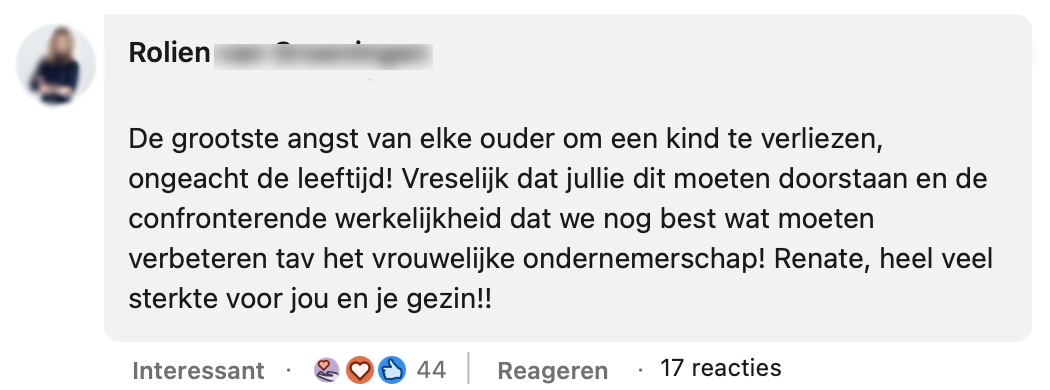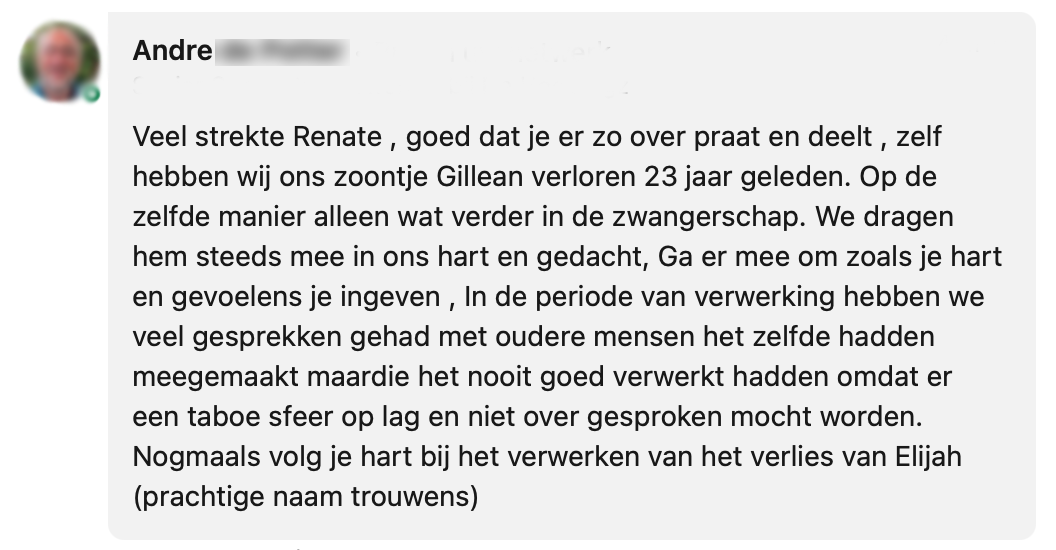5. Veel mensen vinden het dapper dat Renate dit bericht deelt en wensen haar heel veel sterkte met dit verschrikkelijke verlies.