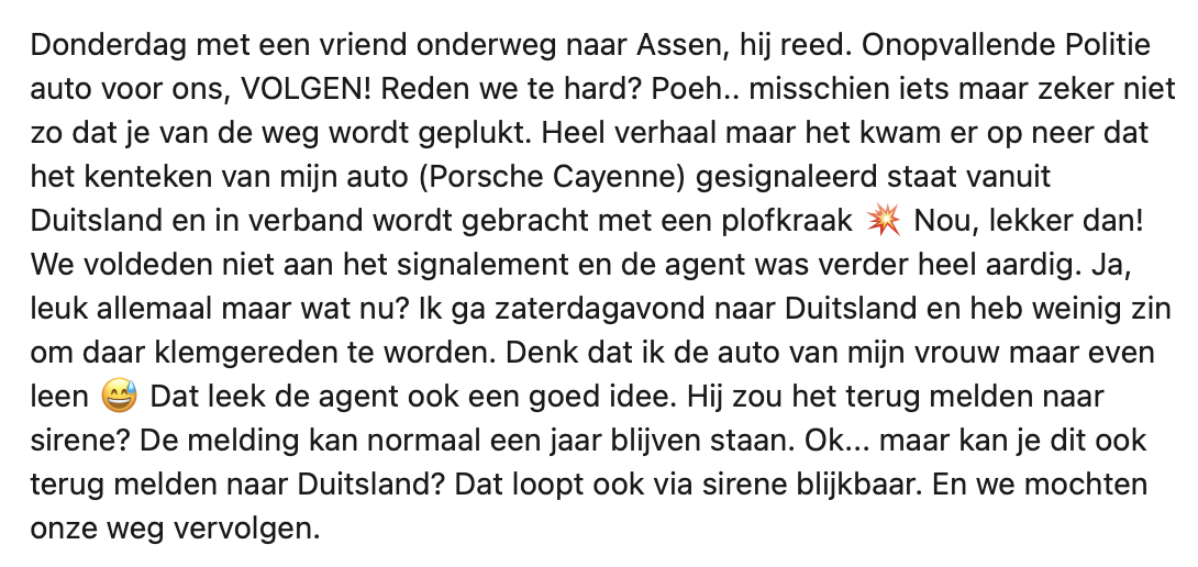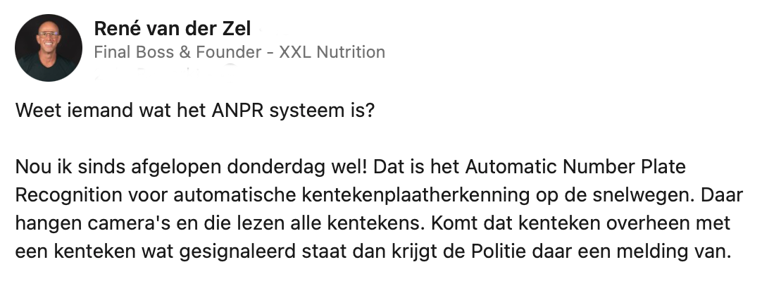 Wanneer je langs de kant van de weg wordt gezet door een politieauto, is het toch best even schrikken. René overkwam dat afgelopen week elke keer als hij voorbij een zogeheten ‘ANPR-punt’ reed. “Wat heeft die man in hemelsnaam gedaan?”, horen we je denken. Nou, dat vroeg hij zich ook af, maar gelukkig kon de politieagent hem dat haarfijn uitleggen.