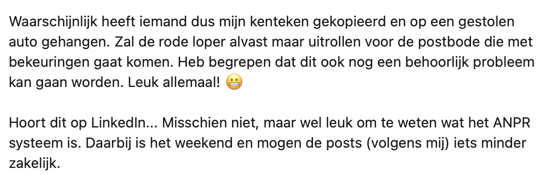 4. René verwacht dat er ook een aantal bekeuringen op z’n deurmat zullen vallen. Eén ding is zeker: het ANPR-systeem werkt wel.