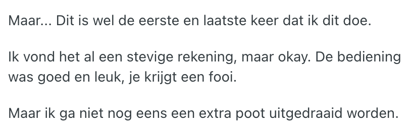 3. De gast voelt niet de behoefte om nog een keer voor vijftig cent diens behoefte te doen.