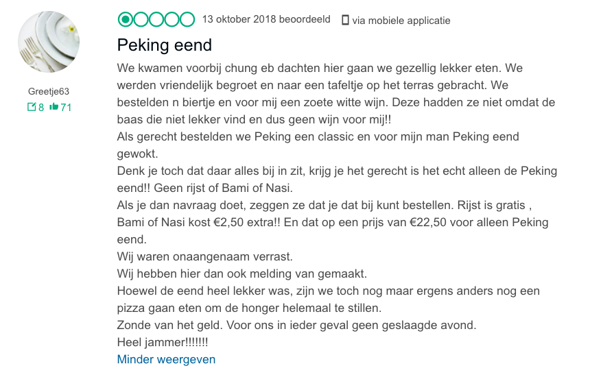 1. Dit is de review die Greetje achterlaat op Tripadvisor.