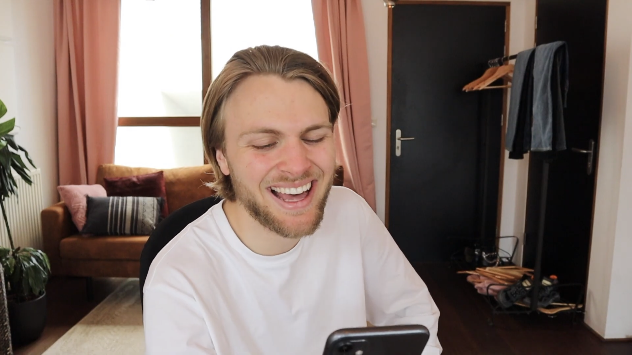 7. Alleen, voor iemand met zoveel kritiek moet hij wel behoorlijk veel lachen in zijn video.