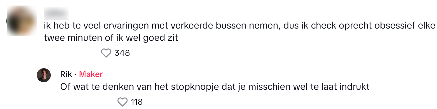 Reizen met het ov brengt best wat stress met zich mee. Zo moet je proberen je kop koffie recht te houden terwijl je een sprintje trekt naar bus drie en ontstaat er blinde paniek als je weer vergeten bent waar je je ov-kaart hebt gestopt. Als je dan eenmaal zit, kan je nog niet echt lekker ontspannen. Stopt de bus wel bij jouw halte en zit je eigenlijk wel in de goede bus? Rik laat in deze pijnlijk herkenbare video zien dat je aardig stressbestendig moet zijn voor zo’n tripje met de bus.