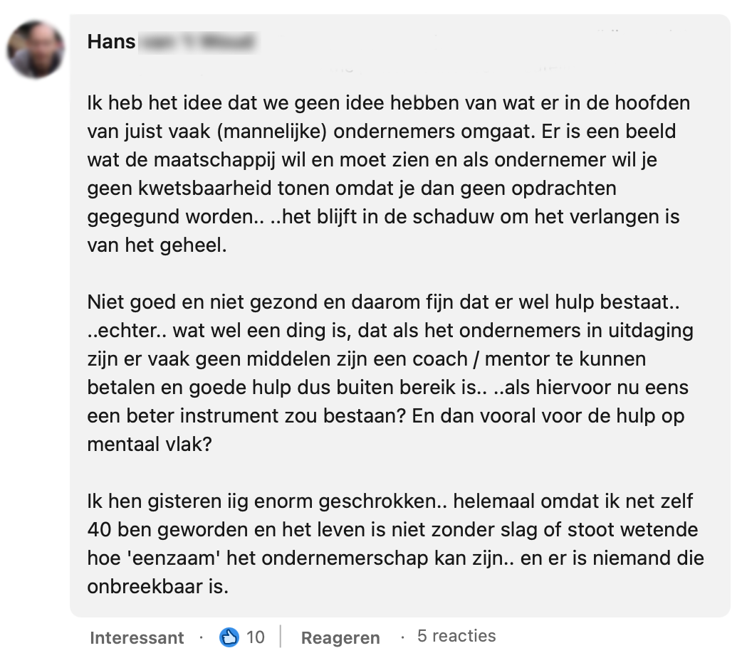 5. Volgens Hans is het ook belangrijk dat mannen de juiste hulp of coaching krijgen op het moment dat ze dat nodig hebben.