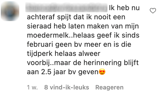 Wanneer je oogappeltje wordt geboren is dat een speciaal moment. Er zijn zoveel mijlpalen bij de geboorte en het liefst wil je alle herinneringen bewaren. Zo ook de fase ‘borstvoeding geven’. Ook actrice Stijn Fransen wilde dit moment voor eeuwig vastleggen en bewaren. Tegenwoordig is niks meer te gek en is de klant koning. En dat niks meer te gek is, blijkt wel uit het sierraad dat Stijn met haar eigen borstvoeding heeft laten maken.