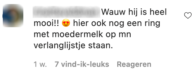 Wat leuk! Een ring van moedermelk. Staat heel tof gecombineerd met een ketting van je placenta en een armband van vruchtwater! pic.twitter.com/Xw3OnSeLEJ