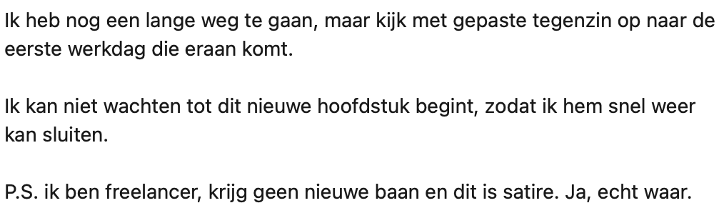 3. Robin besluit alle clichés aan te pakken en sluit het bericht dan nog op gepaste wijze af. Wel met een kleine noot dat het gaat om satire.