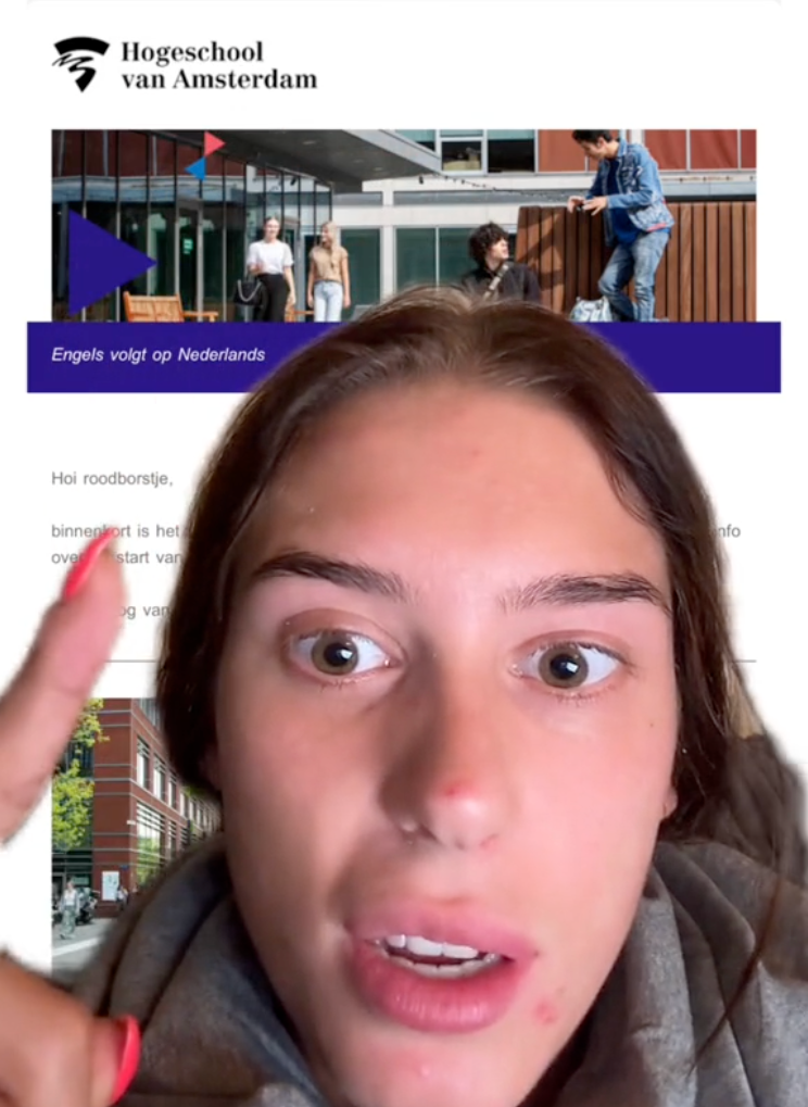 1. Robin staat met haar mond vol tanden nadat ze de aanhef in deze mail van de Hogeschool van Amsterdam ziet.