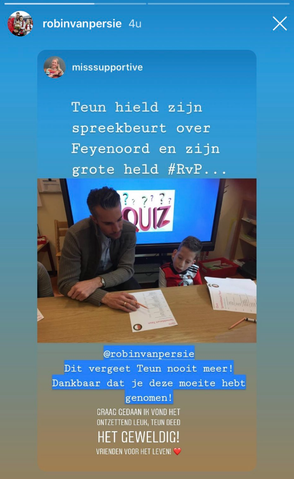 Scherp gezien van jou! @Persie_Official is inderdaad geweest…. Een grote verrassing! Wij wisten van niets. Teun slaapt nu als een roosje, met Robnlin in zijn hoofd en overal in zijn kamertje ♡ pic.twitter.com/PboU2i0eRy