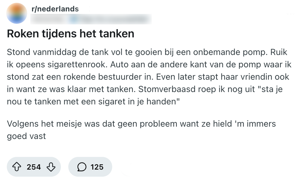 Tanken is niet het leukste in de wereld. Het is natuurlijk erg duur en het stinkt een uur in de wind (ook al vind je die geur ergens wel lekker). Voor deze Reddit-gebruiker is het zeker geen pretje wanneer hij een bestuurder spot die bij het tankstation staat te roken. Hij spreekt diegene aan, maar de reactie roept een discussie op of die voorzichtigheid nou echt nodig is.