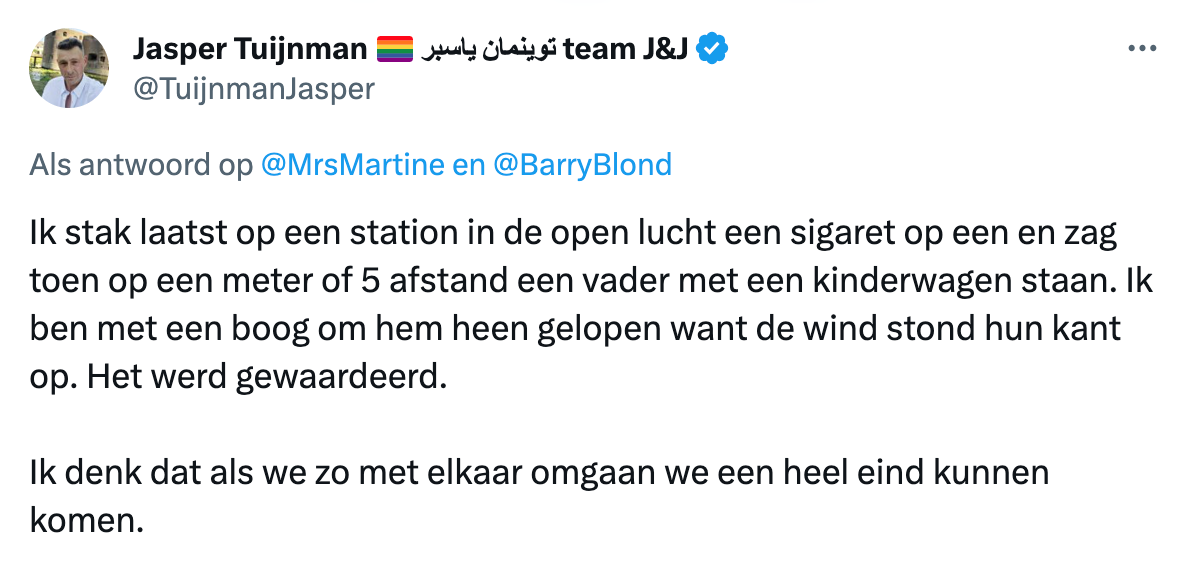 Op steeds minder openbare plekken mag er gerookt worden. Hoewel roken op openbare plekken vroeger normaal was, wordt het tegenwoordig steeds minder geaccepteerd. Toch blijft het een discussiepunt: de één vindt dat buiten roken gewoon moet kunnen, terwijl de ander het daar absoluut niet mee eens is. Martine geeft op Twitter haar mening over dit gevoelige onderwerp en de reacties staan in vuur en vlam.