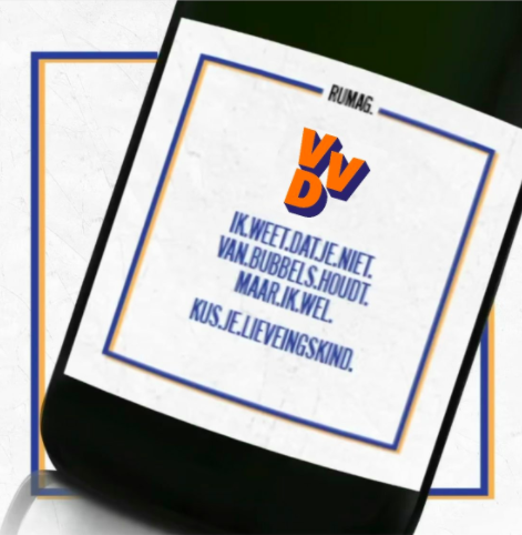 Denk je aan de VVD dan denk je aan hun oranje-blauwe logo. Dus toen Tim Hofman dit op Instagram voorbij zag komen, dacht hij meteen aan de VVD. Maar de vork bleek iets anders in de steel te zitten. En laten we vooropstellen dat dit allemaal niet meer dan een gebbetje is. Althans, we verwachten niet dat hier kamervragen over gesteld gaan worden.