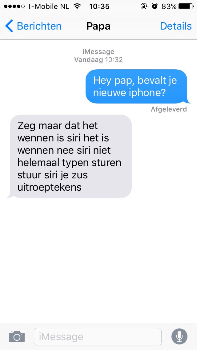 5. “Zeg maar bevalt nog niet nee niet zeg maar zeggen kut siri.”