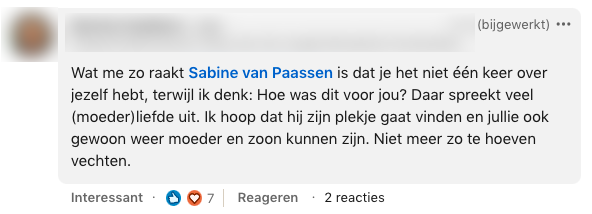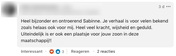 Sabine wordt overladen met steunbetuigingen na post over zoon met autisme