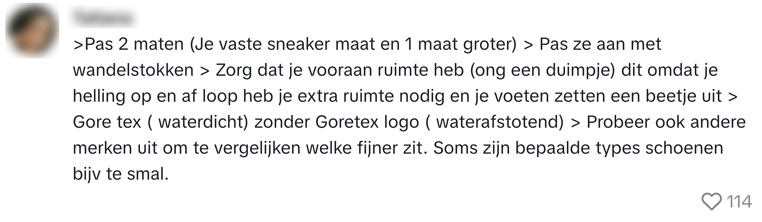 5. Om de zoektocht naar wandelschoenen toch op rolletjes te laten lopen, komen anderen meteen met adviezen.