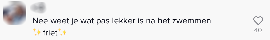 Een hele dag gezwommen in het zwembad, en dan in je bikini of zwembroek, uitgehongerd een patatje eten. Daar kan echt niks tegen op. Samed maakt er een TikTok over die viral gaat, alleen gaan de comments over iets anders dan je in eerste instantie zou denken.