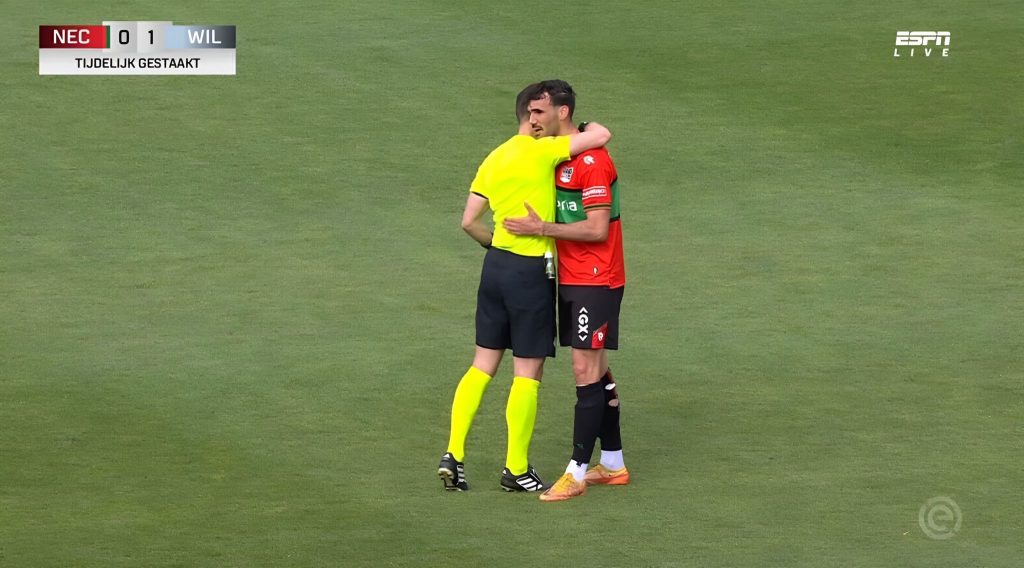 Afgelopen zaterdag kreeg N.E.C. Willem II op bezoek in Nijmegen, maar de wedstrijd verliep niet zoals de meeste duels. Nog voor de rust botsten N.E.C.-spelers Proper en Ogawa hard tegen elkaar, waarna Proper stil bleef liggen. Terwijl het medisch team zich over Proper ontfermde, vormden spelers van beide clubs een haag om hem heen – om publiek en camera’s het zicht te ontnemen. Spelers, trainers, arbitrage en toeschouwers waren zichtbaar aangeslagen en sommigen lieten de tranen de vrije loop. Nog geen vijf minuten later werd de wedstrijd opnieuw stilgelegd, toen iemand in het publiek onwel raakte. Scheidsrechter Danny Makkelie, die de wedstrijd floot, kreeg veel lof voor zijn handelen tijdens deze ingrijpende momenten. Hij deelt zijn openhartige verhaal op LinkedIn en roept op tot meer menselijkheid in het voetbal.