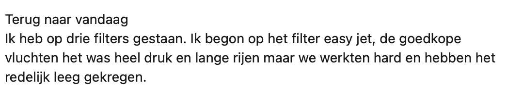 2. Ze vertelt dat ze op een dag verschillende shifts heeft op verschillende ‘filters’.