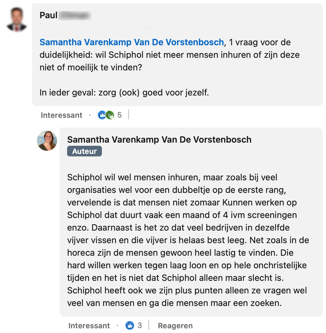 7. Samantha legt uit hoe het kan dat er zo’n personeelstekort is op Schiphol.