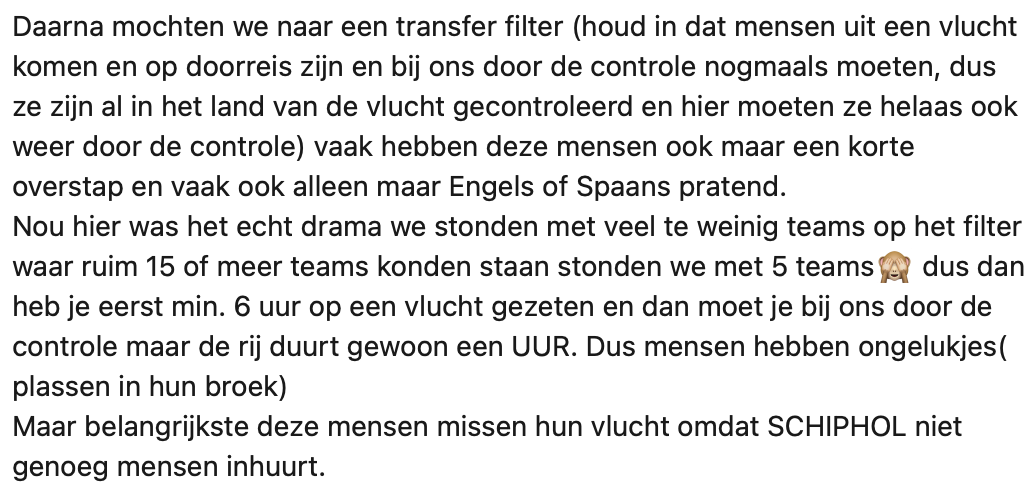 6. Sanne vraagt zich af of Schipholmedewerkers wel getraind zijn op dit soort situaties.