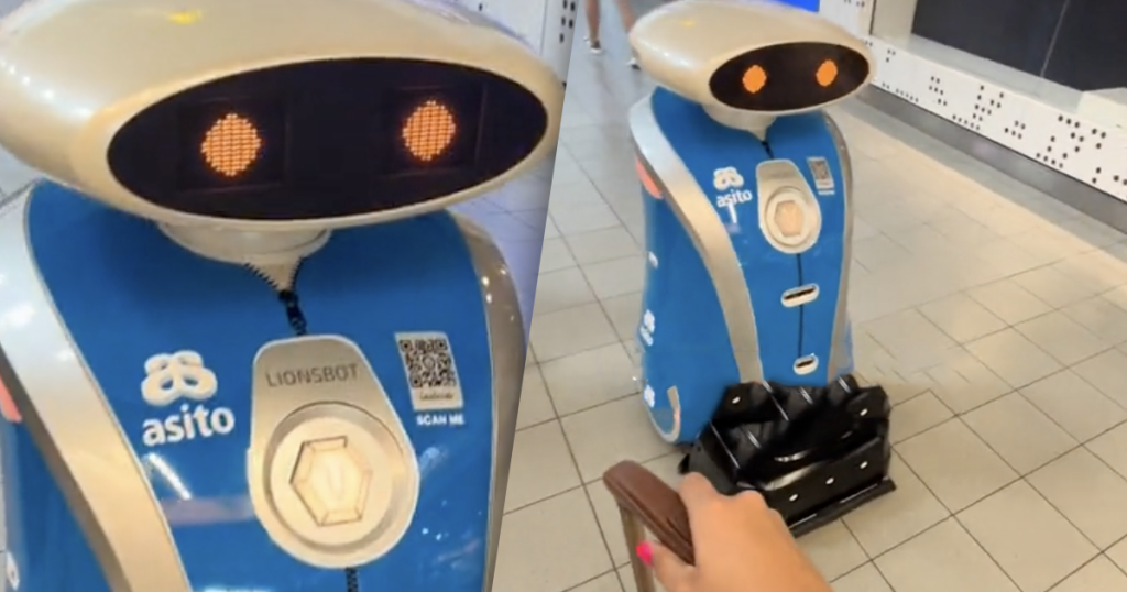 1. Jade staat met haar mond vol tanden wanneer ze de boodschap van de robot op Schiphol hoort.