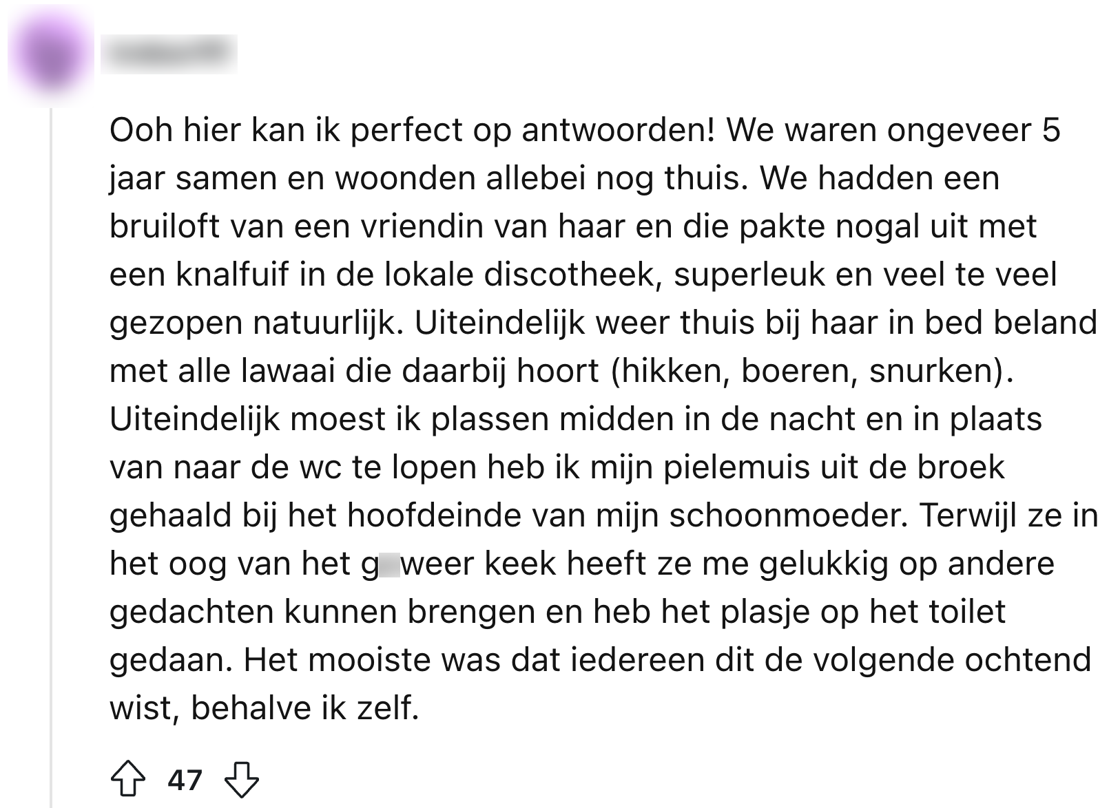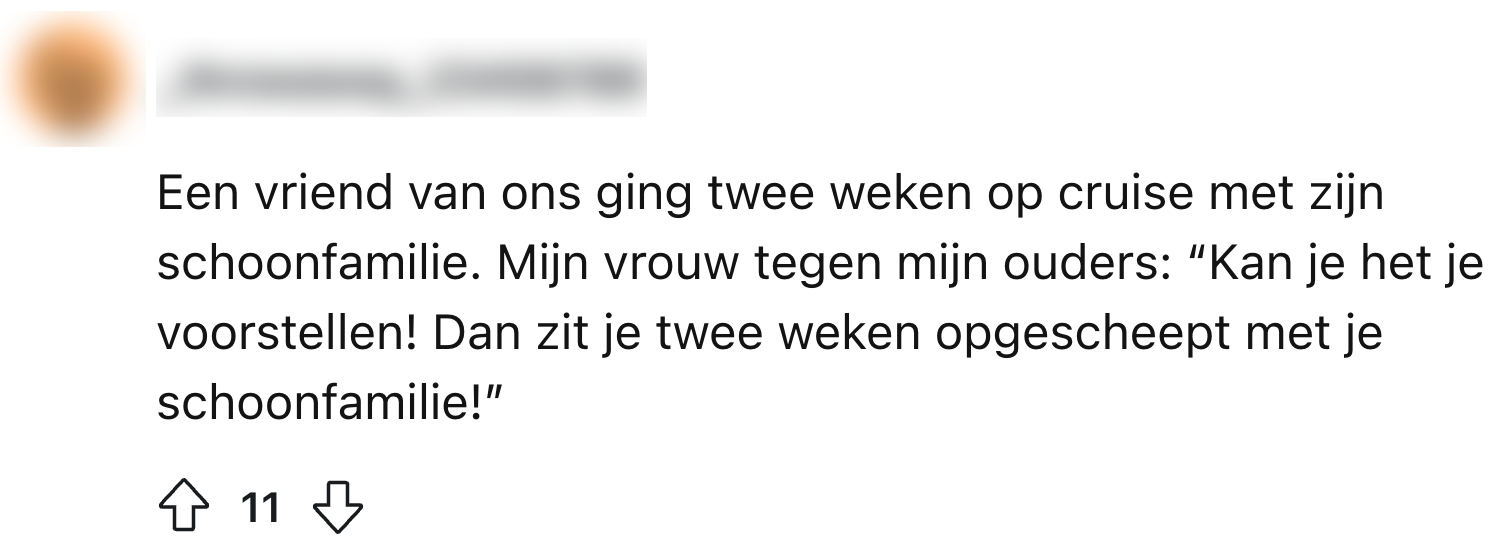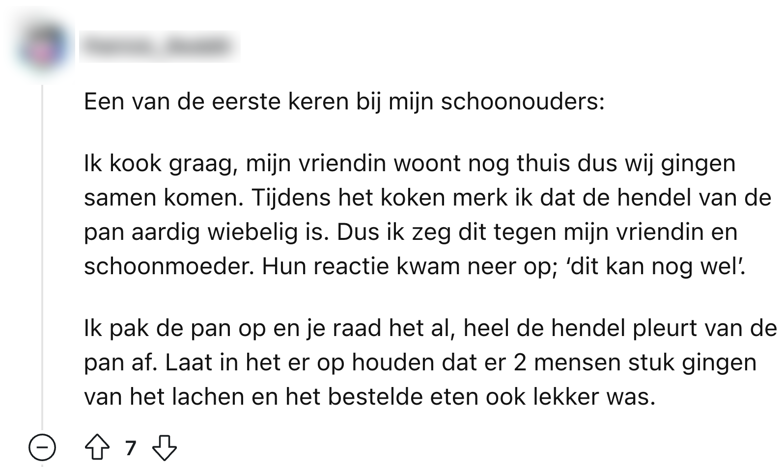 Er komt veel meer bij een relatie kijken dan alleen tijd met elkaar doorbrengen en als een ANWB-koppel in matchende regenjassen hand in hand lopen. Je krijgt namelijk ook te maken met het leed dat schoonouders heet. Hoewel sommige hartstikke gezellig zijn, heb je van andere al heel snel genoeg. Wat je in ieder geval níét wil, is dat zij schoon genoeg van jou krijgen. Deze veertien Nederlanders maakten een onhandige blunder bij hun schoonouders die ze het liefst zo snel mogelijk zouden vergeten.