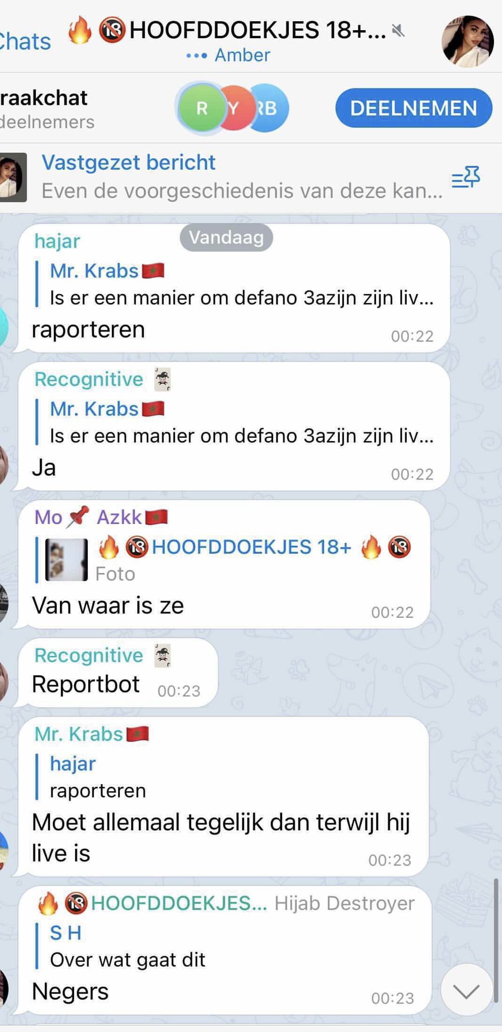 4. Dit zijn de vermeende screenshots. In een groepchat met meer dan 50.000 deelnemers wordt er gepraat over Défano en het bejegenen van zijn livestream.