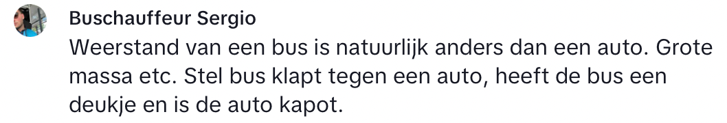 In het verkeer zijn er een hoop regeltjes en dat is vaak maar goed ook. Het zou toch jammer zijn als de bestuurder voor je de halve afvalcontainer van MacDonald’s op je voorruit flikkert of een vrachtwagenchauffeur rustig een douche neemt in zijn cabine. Ook in het openbaar vervoer zijn er richtlijnen, maar die verschillen blijkbaar weleens van reguliere autorijders. Sergio legt uit waarom buschauffeurs geen gordel om hoeven tijdens het rijden, maar niet iedereen vindt dit zo veilig.