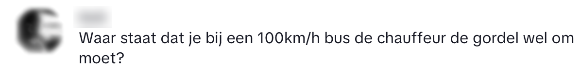 1. Sergio kreeg de vraag waarom buschauffeurs geen gordel om hoeven tijdens het rijden en legt uit waarom. Ook benadrukt hij dat het boven de honderd kilometer per uur wél verplicht is.
