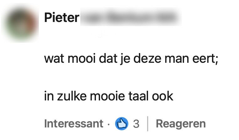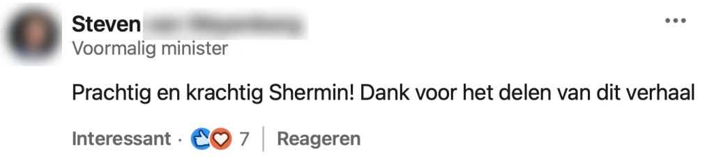 1. Naar aanleiding van de ‘lintjesrel’ met Faber besluit politiek dissident Shermin de positiviteit op te zoeken. Hij zet zijn coach en vriend Gerard in het zonnetje op LinkedIn.