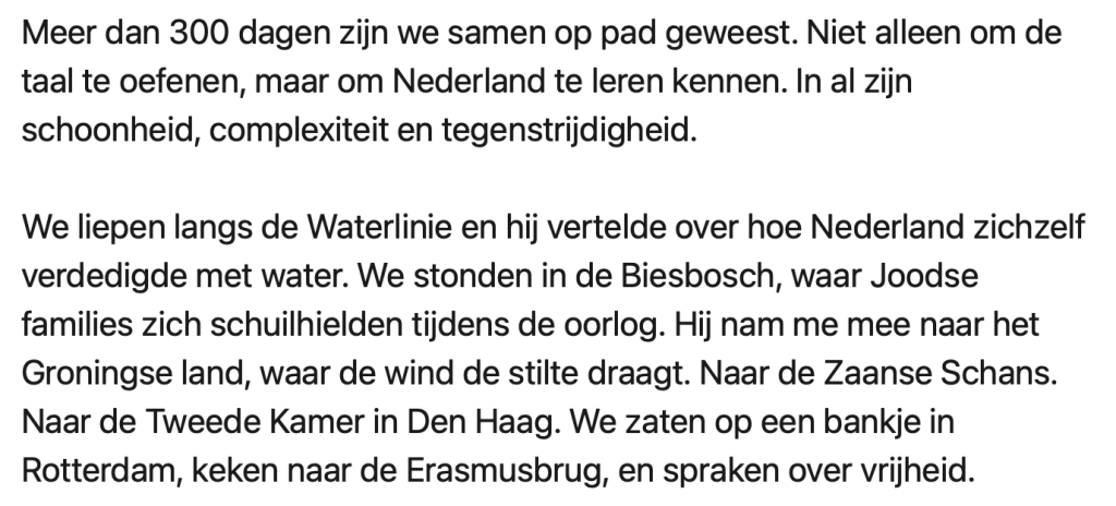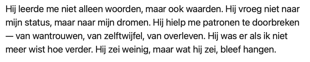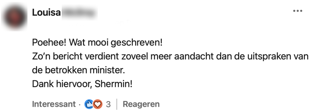 1. Naar aanleiding van de ‘lintjesrel’ met Faber besluit politiek dissident Shermin de positiviteit op te zoeken. Hij zet zijn coach en vriend Gerard in het zonnetje op LinkedIn.