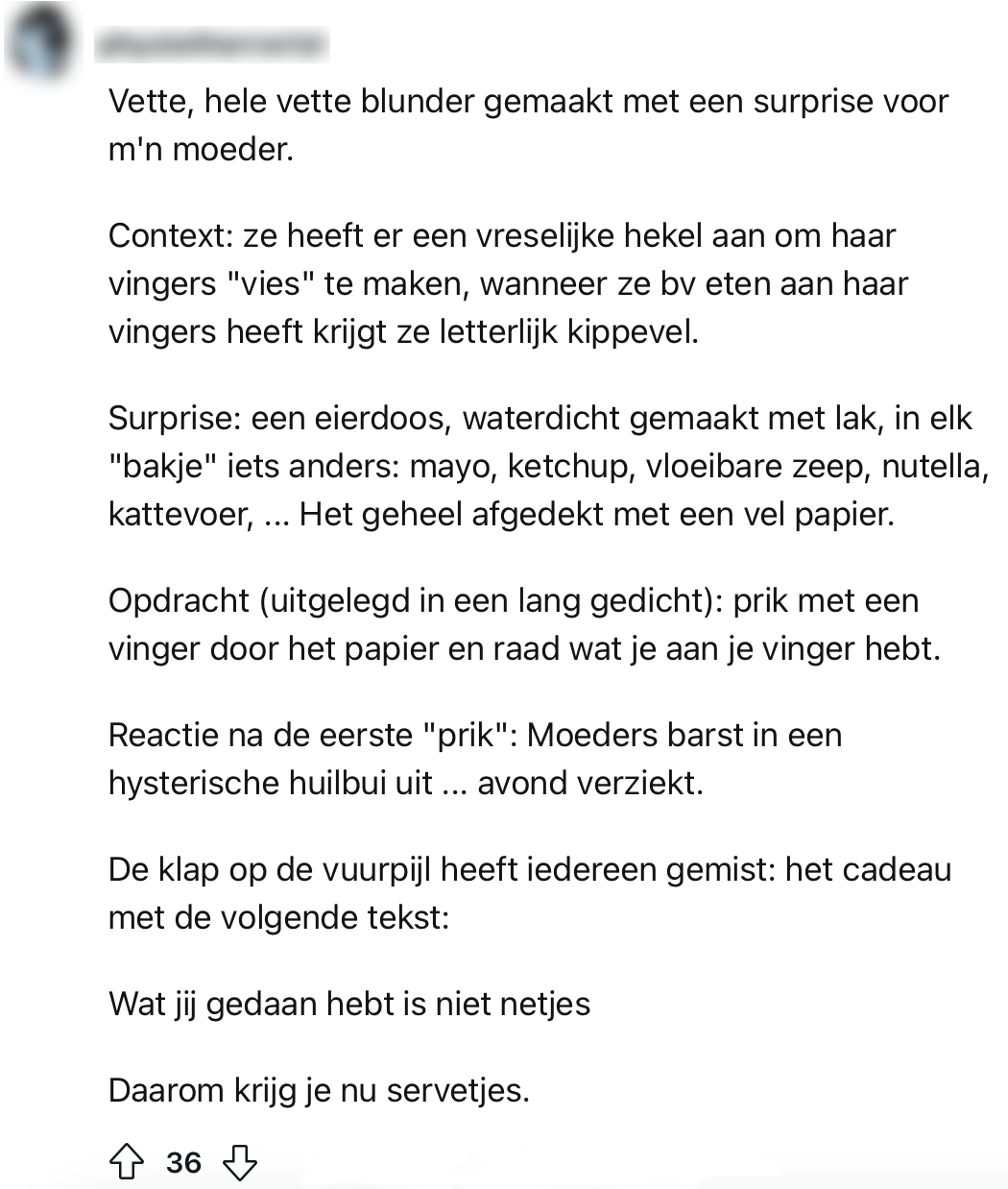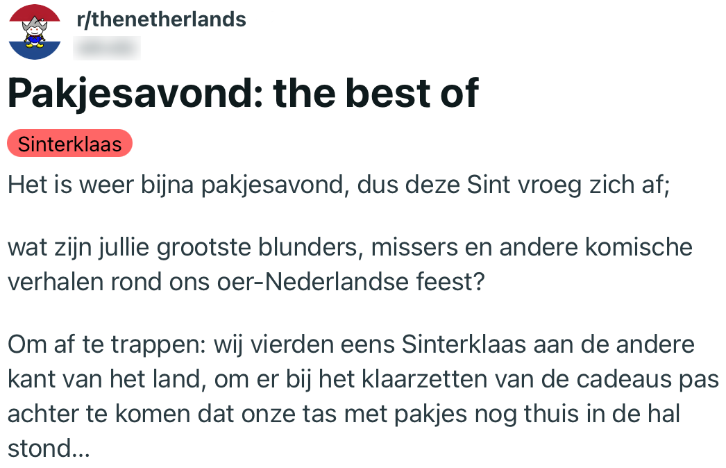 Op pakjesavond zitten families elk jaar opnieuw vol spanning te wachten op Sinterklaas en de leuke cadeautjes die hij allemaal meebrengt. Het is dan ook geen wonder dat er weleens het een en ander misgaat op deze bijzondere avond. Deze Reddit-gebruiker kent dit maar al te goed en is benieuwd in welke komische situaties andere Nederlanders op pakjesavond terecht zijn gekomen. En wat blijkt: die lijst is érg lang.